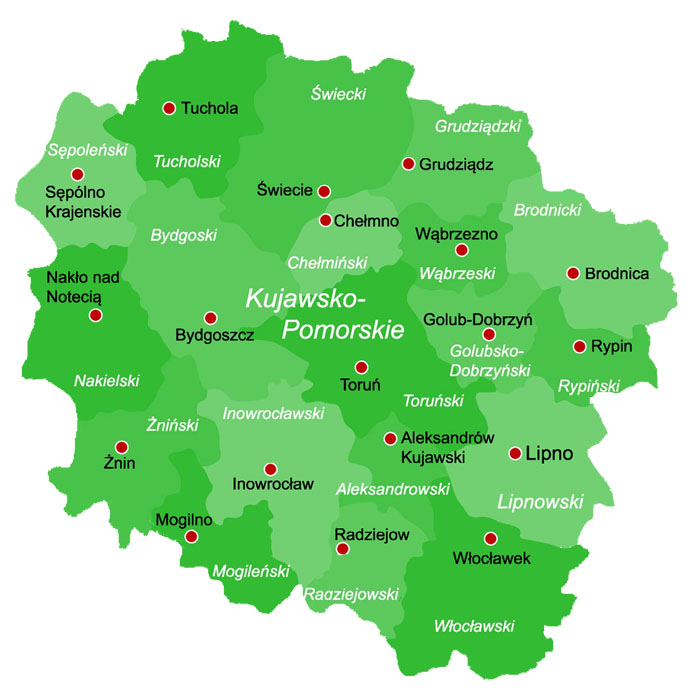 Działamy głównie na terenie INOWROCŁAWIA, GRUDZIĄDZA, TORUNIA oraz w całej okolicy województwa kujawsko-pomorskiego.